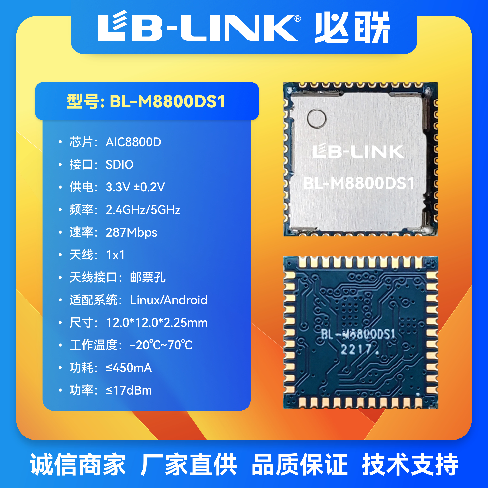 BL-M8800DS1国产AIC8800D双频5G无线模块SDIO接口低功耗wifi6模组 - WIFI模组工厂直接经营的总店