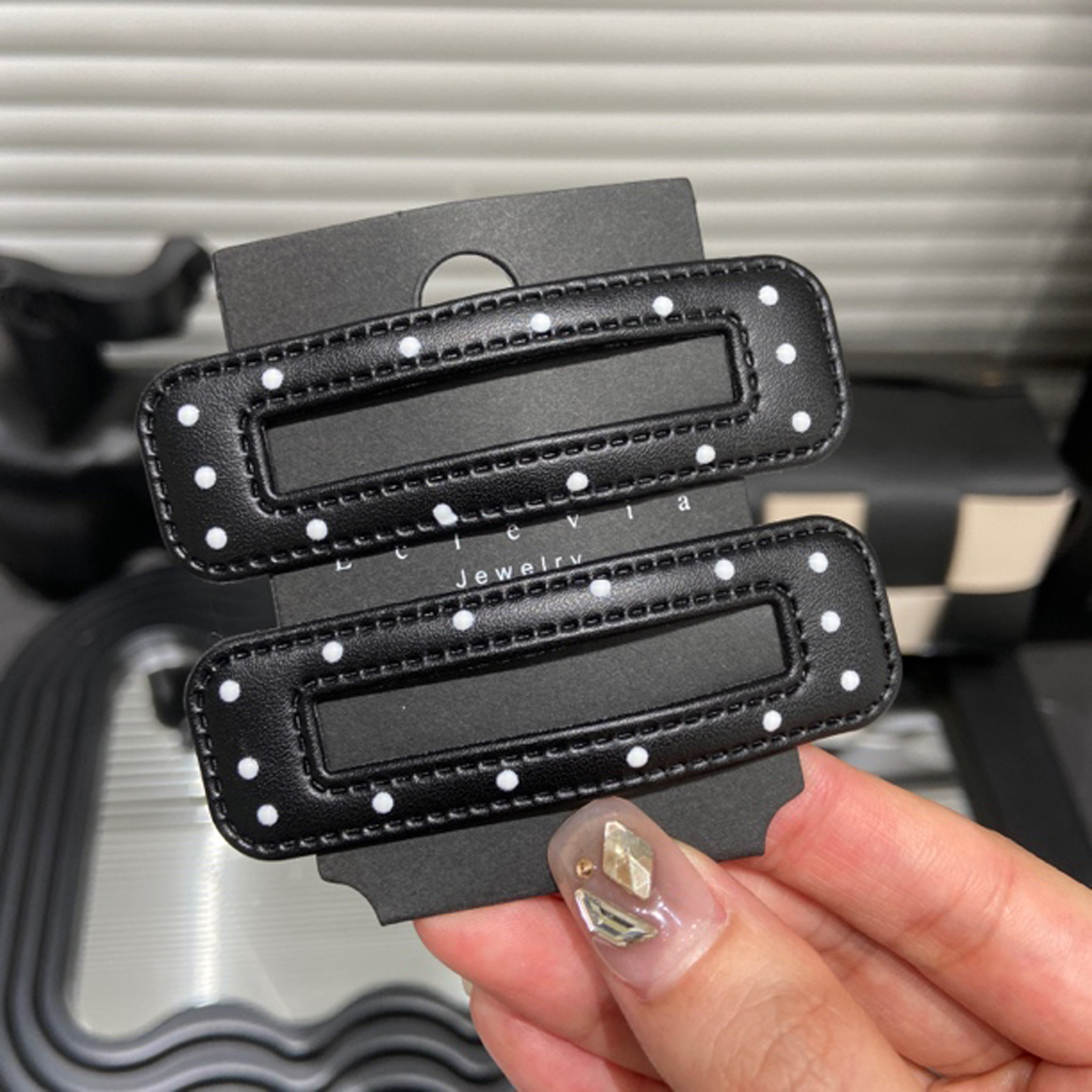 E4364 黑白波点皮质发夹女前额碎发刘海夹甜酷辣妹bb夹简约边夹女 - Monna Acc