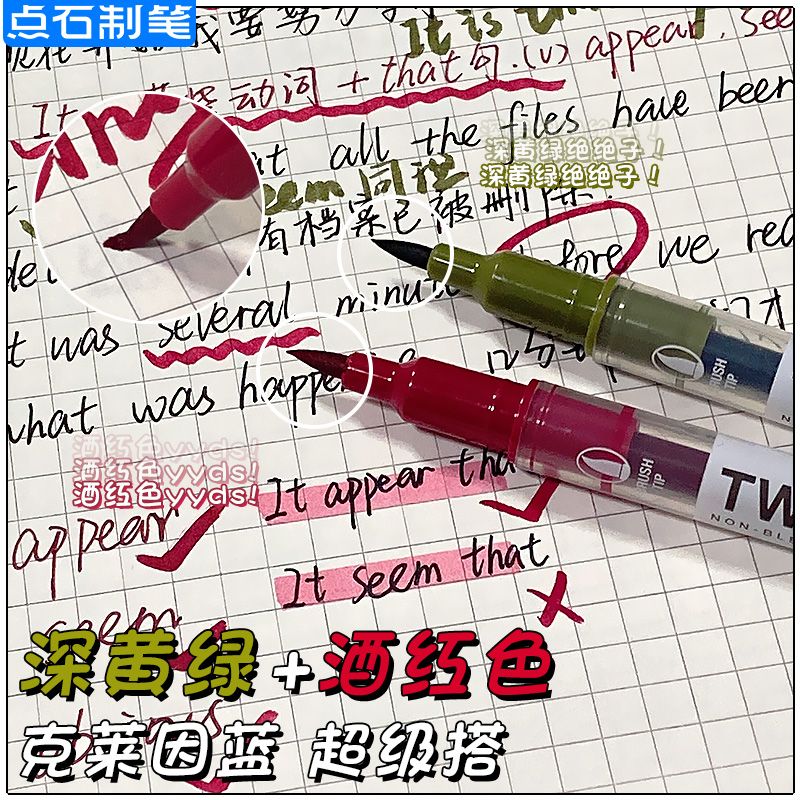 点石2001brush双头马克笔做笔记划重点批改红笔克莱因蓝勾线记号笔韩系软头笔学生美术画画艺术字ins风水彩笔 - 点石学霸专卖店