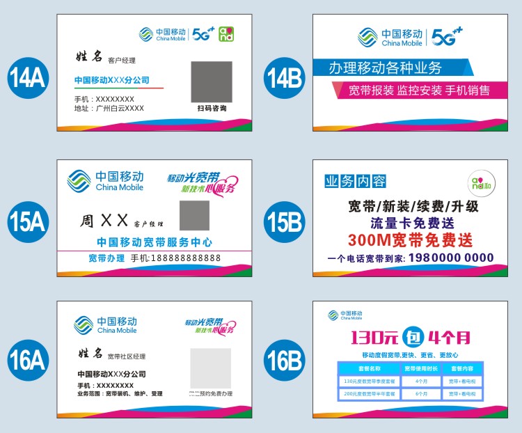 中国移动营业厅联通电信5G宽带公司业务设计名片定做制作宣传单 - 彩途广告