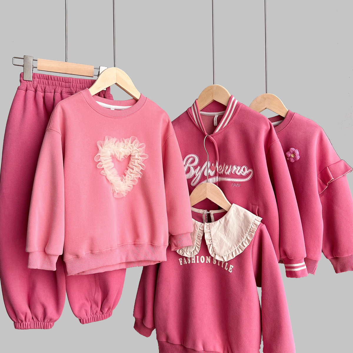 玫红色系 儿童圆领卫衣 女童宽松外套 收口长裤 中童 春秋款童装 - 山东网店童装店