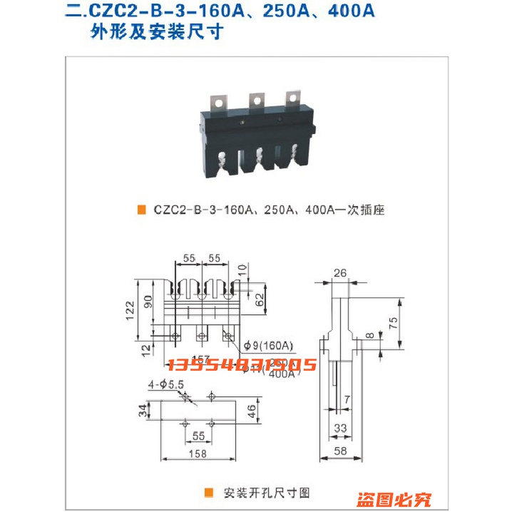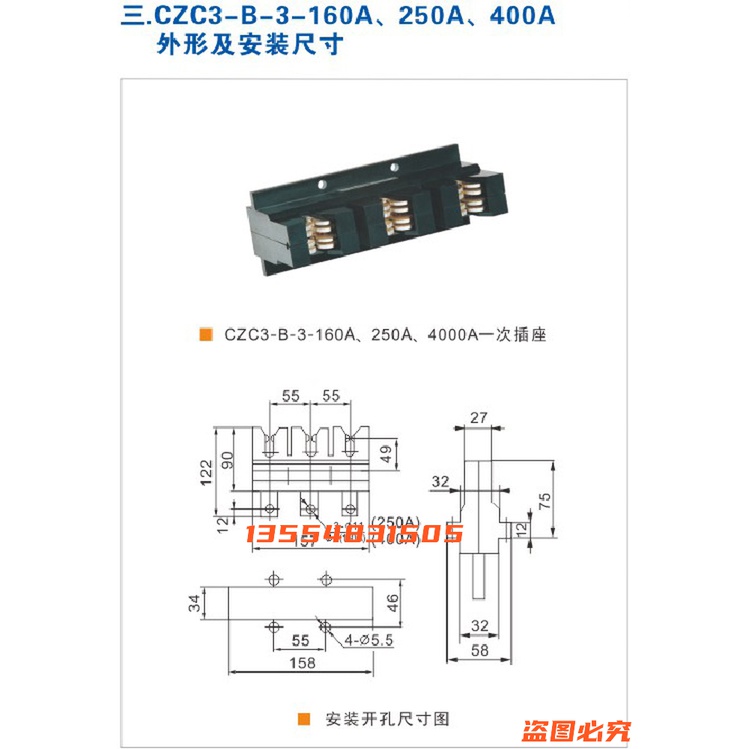 温州新侨兴机电器CZC3-B-3-400A/630A250A抽屉柜一次插件CZC2-B-3 - 甲辰龙金