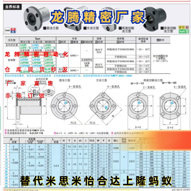 整体不锈钢切边法兰直线轴承SLHFCS/SLHFCWS8 10 12 16 20 25 30 - 龙腾自动化