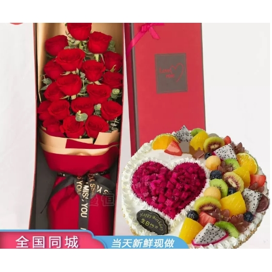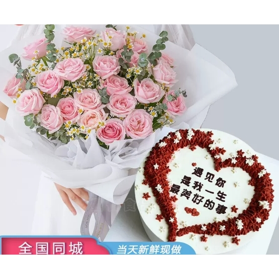 松源宁江区中东亚泰油田金钻商圈中东班芙小镇玫瑰生日蛋糕鲜花店 - 好运来鲜花坊