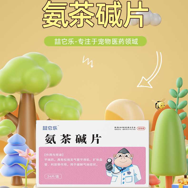 肺心康狗猫咳嗽支气管哮喘扩张宠物氨茶碱片匹莫苯丹心脏病肥大药 - 仙乐宠物医疗保健店