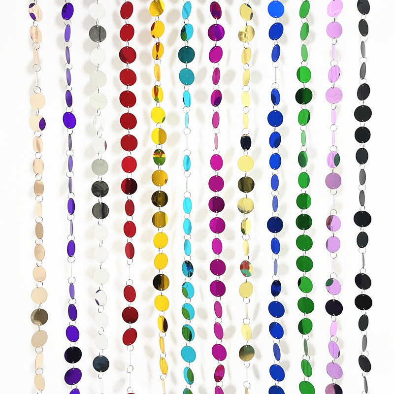 婚庆道具镜面镭射素面七彩透明彩色3cm3公分3厘米圆形亮片串帘子 - 双囍婚庆道具