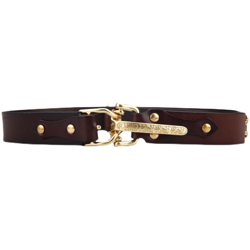 微瑕疵利特尔顿骑兵扣皮带休闲复古实心黄铜快开裤带头层牛皮腰带 - 千益皮具